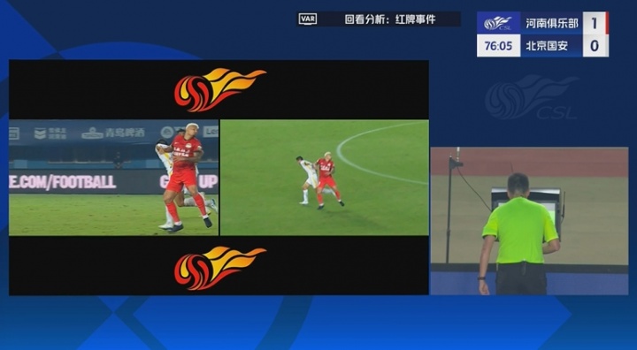 王刚无球状态下击打卡多索面部,主裁判看过VAR后处以黄牌警告